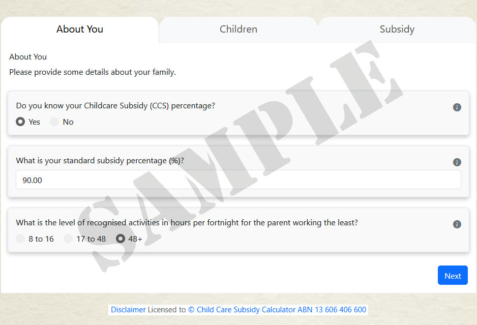 The online Child Care Subsidy (CCS) Calculator is developed and maintained by www.childcaresubsidycalculator.com.au