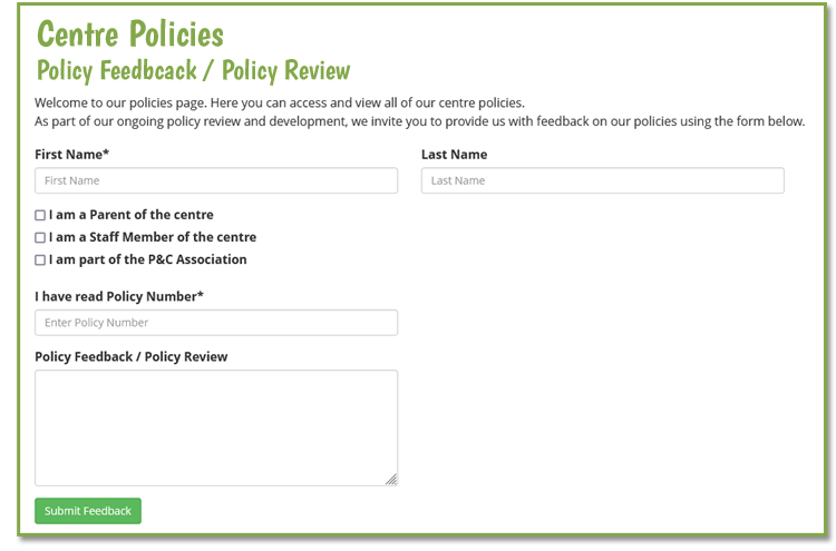 Would you like people to be able to apply/enrol online? Or perhaps you would like to get feedback from existing families about your service, its policies or programs. We can create customised forms to suit what ever your needs.