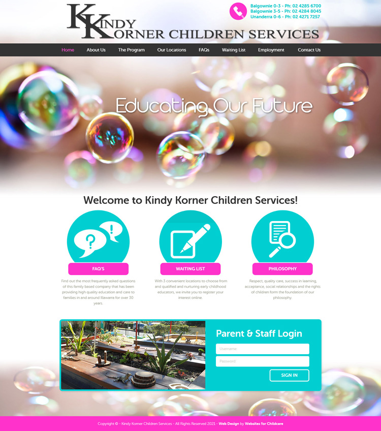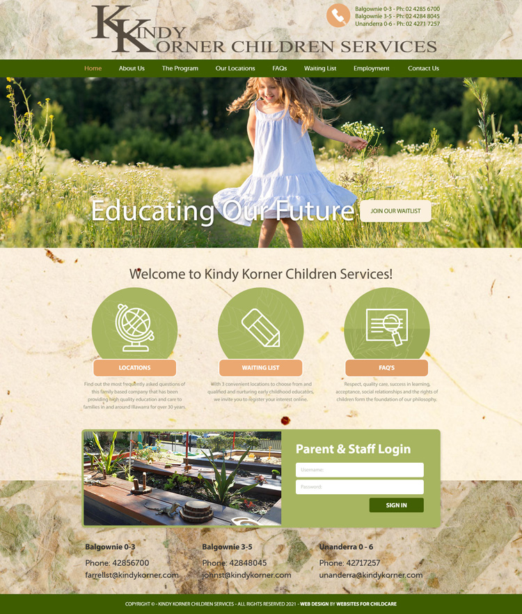Kindy Korner - In this Website Renovation, it was time for a fresh new look embracing natural elements in the new design.