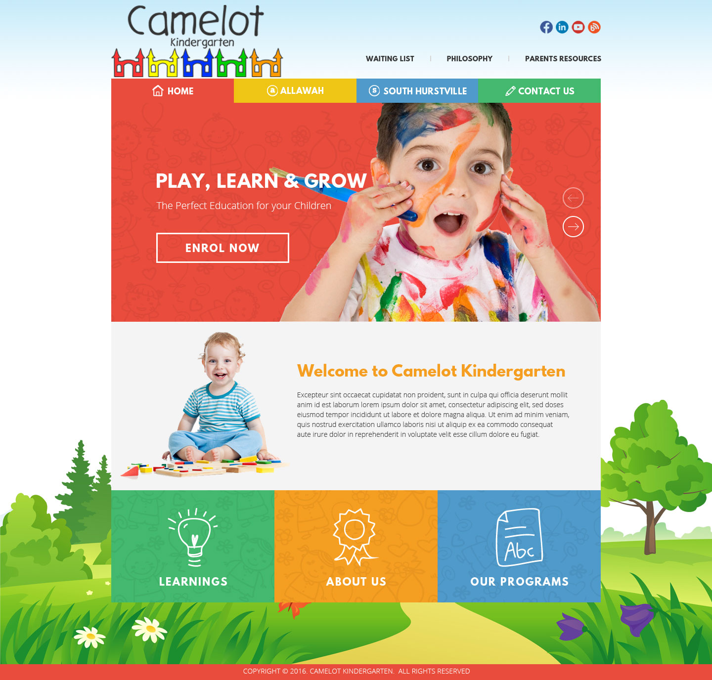 Camelot Kindergarten - In this Website Renovation, it was time for a fresh new look embracing natural & organic elements in the new design.