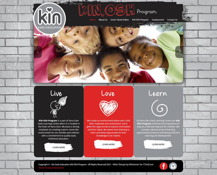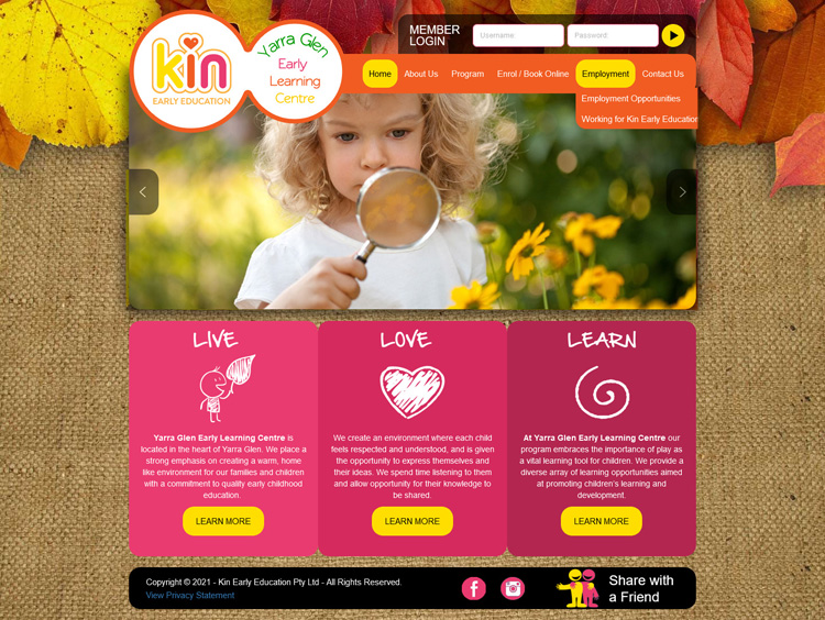 Yarraglen ELC & KinOsh - This "Rebranding" project shows Yarra Glen's main centre website and a 2nd "rebranded" website for its OSH service.